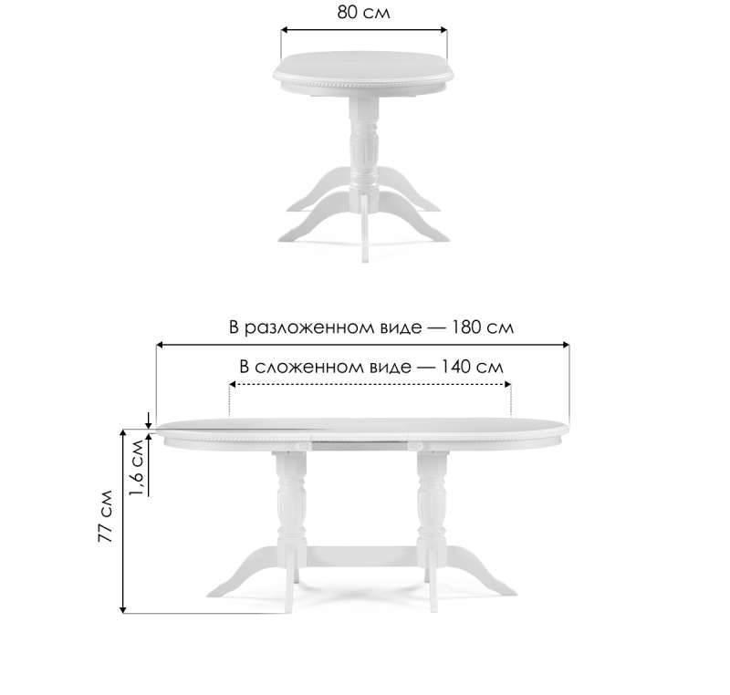Стол деревянный Эритрин 140(180)х80х77 белый / белый (80x77).