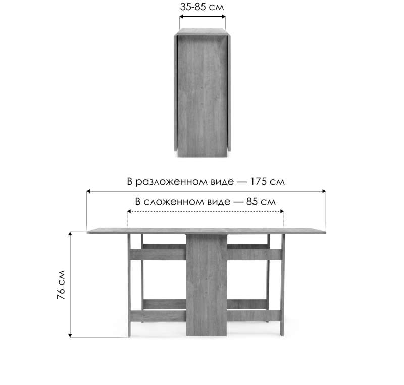 Длина стола в разложенном виде: 170 см.