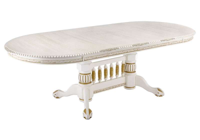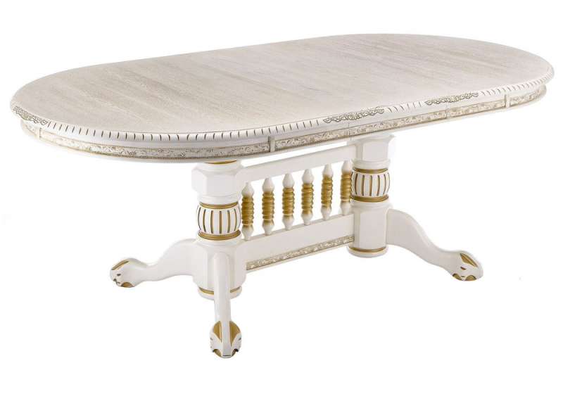Стол деревянный Кантри 160 молочный с золотой патиной (107x78).