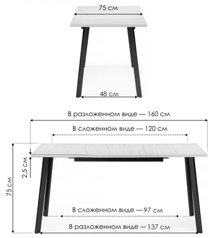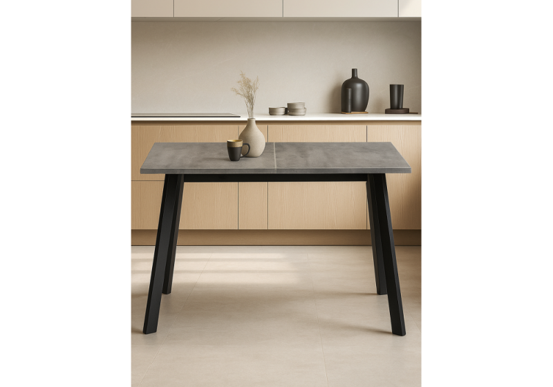 Стол деревянный Колон Лофт 120(160) х 75 черный матовый / бетон (75x75)