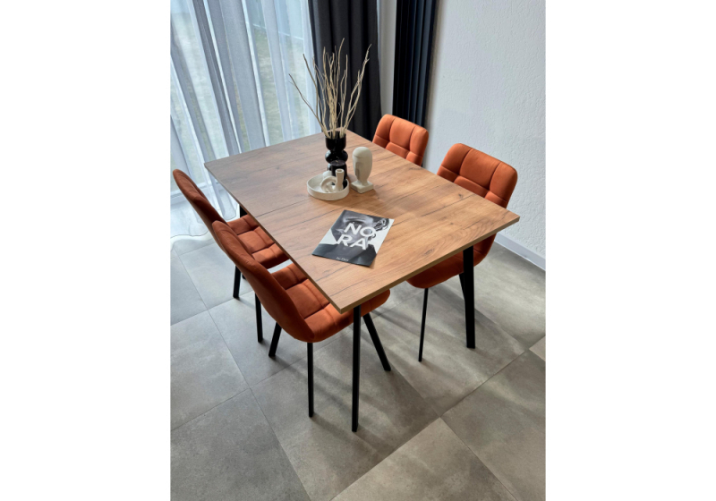 Стол деревянный Кортни 117 (157) x 77 дуб крафт золотой / черный матовый (77x75).