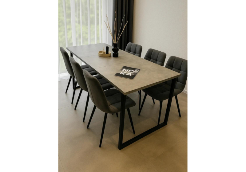 Стол деревянный Лиман 117 (157) x 77 бетон светлый / черный матовый (77x75).