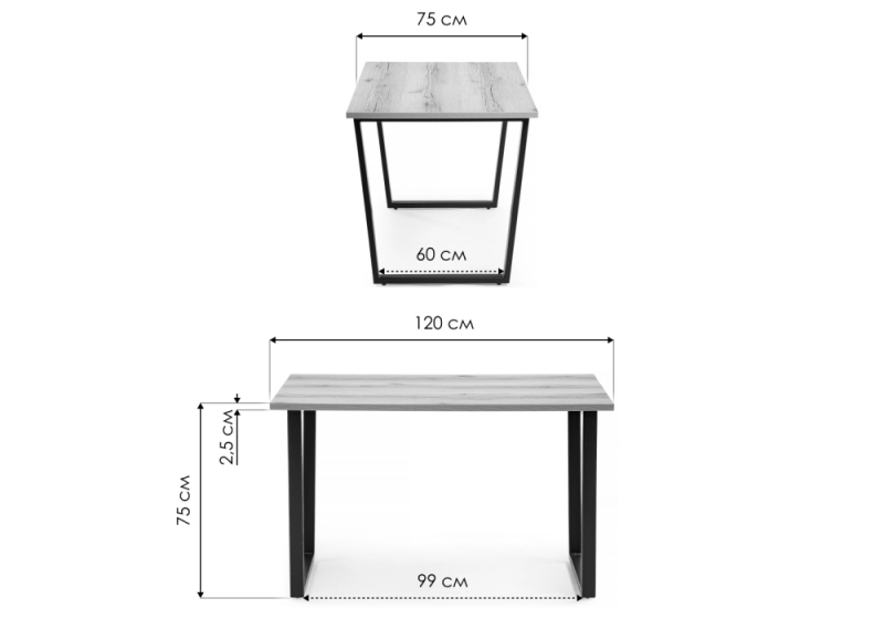 Стол деревянный Лота Лофт 120 25 мм дуб делано светлый / белый матовый (75x75)