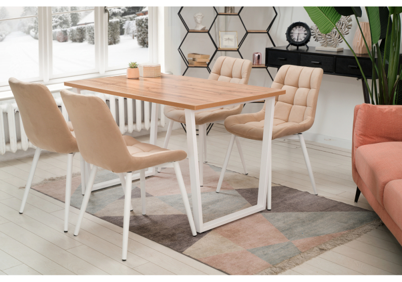 Стол деревянный Лота Лофт 120х75 белый матовый / дуб крафт золотой (75x75)