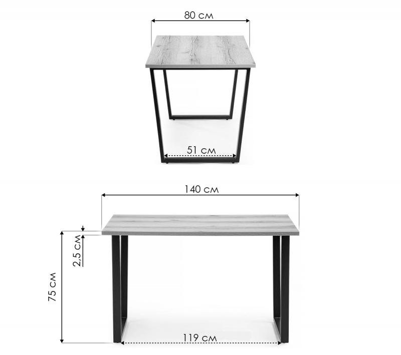 Стол деревянный Лота Лофт 140х80 черный матовый / бетон светлый (80x75).