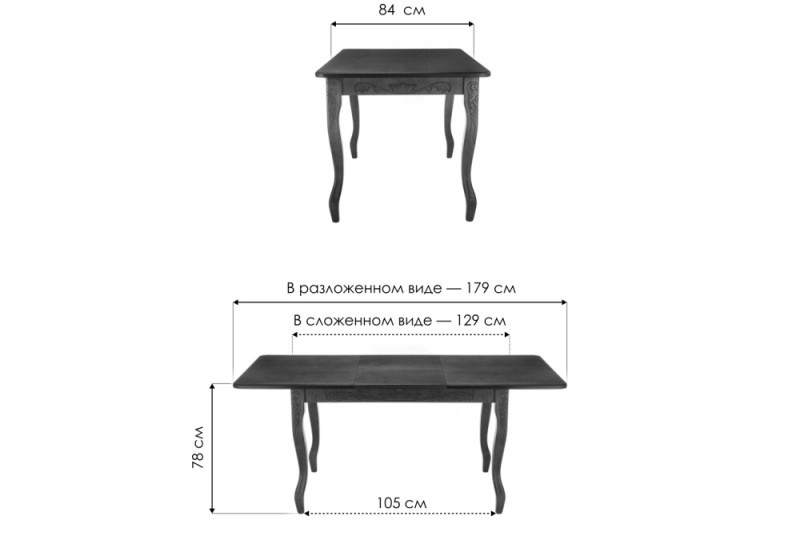 Длина стола в разложенном виде: 179 см.