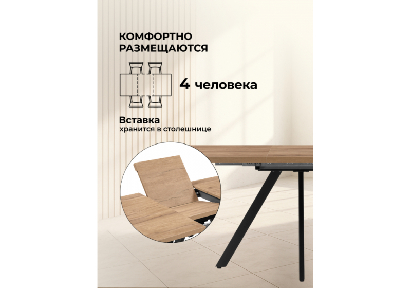 Стол деревянный Райн 32 116(160)x77 раздвижной дуб табачный / черный (77x77)