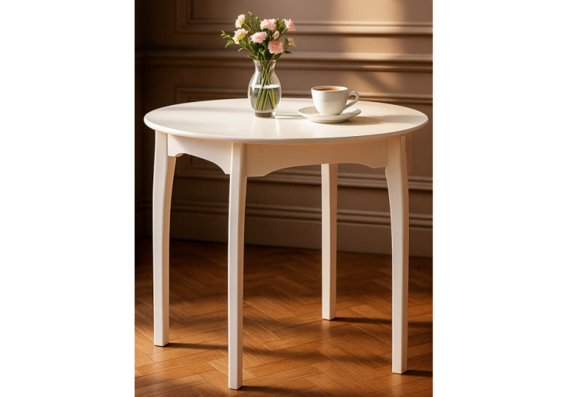 Стол деревянный Распи круглый 90(120)х90х76 белый (90x76).