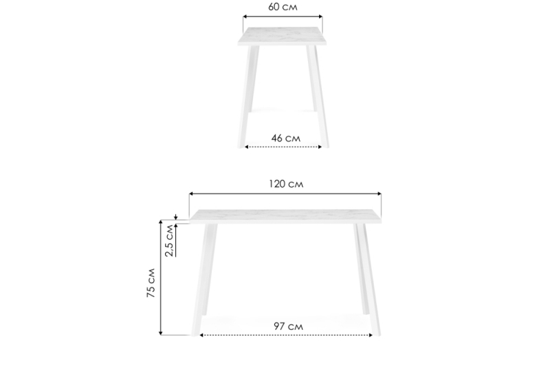 Стол деревянный Тринити Лофт 120х60 белый матовый / бетон (60x75).