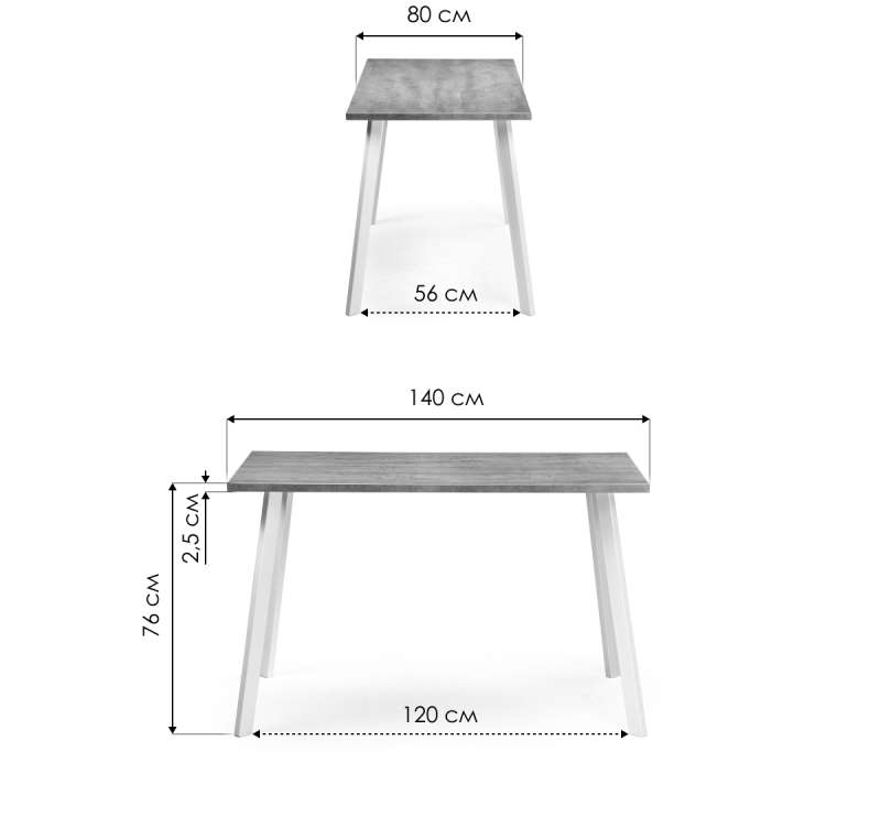 Стол деревянный Тринити Лофт 140х80 бетон светлый / белый матовый (80x76).