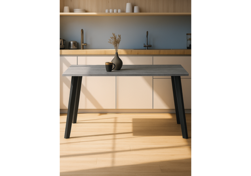 Стол деревянный Тринити Лофт 140х80 бетон светлый / черный матовый (80x76).