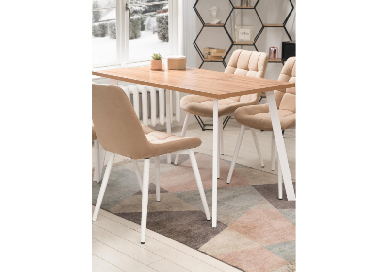 Стол деревянный Тринити Лофт 140х80 дуб крафт золотой / белый матовый (80x76)