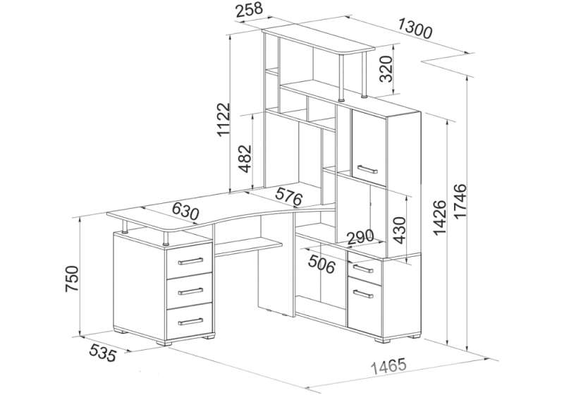 Компьютерный стол Джаз-15 правый венге / дуб молочный (130x174,6).
