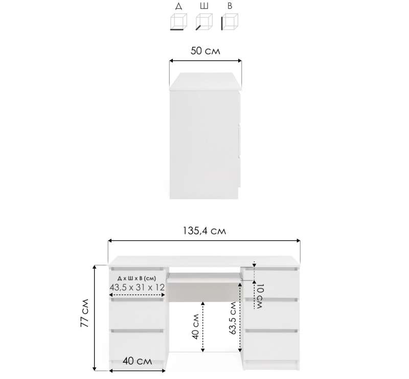 Компьютерный стол Мадера СМП2.6 ЛДСП 135х50х77 графит новый (50x77).