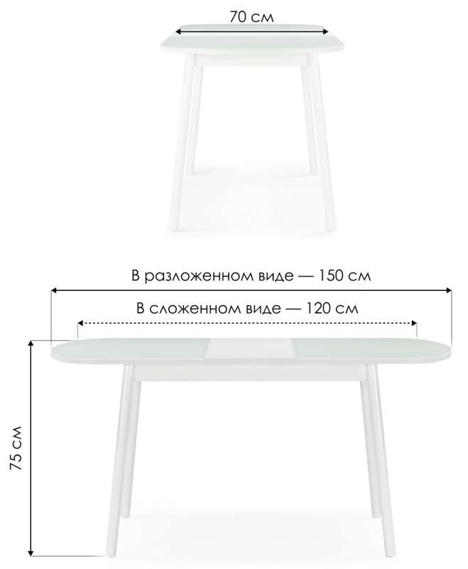 Длина стола в разложенном виде: 150 см.