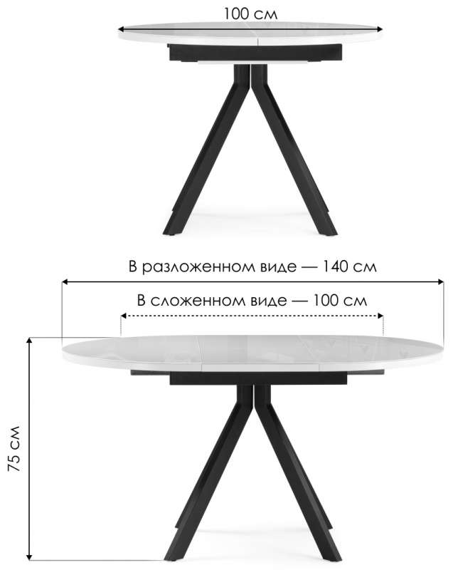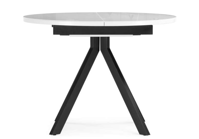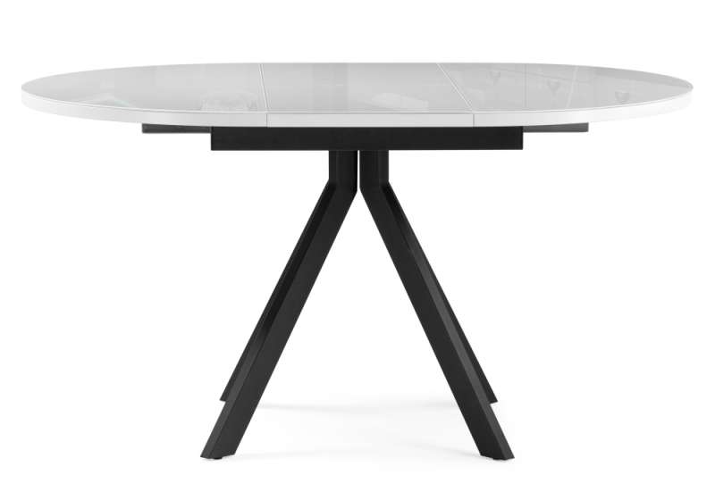 Стол стеклянный Ален 100(140)х100х75 ультра белое стекло / черный (100x74)