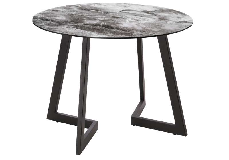 Стол стеклянный Алингсос мрамор серый / черная шагрень (100x76)