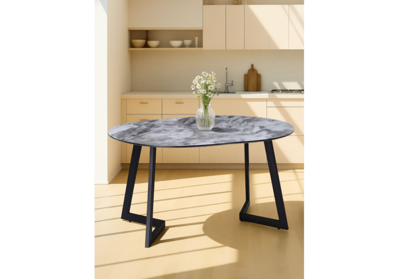 Стол стеклянный Алингсос мрамор серый / черная шагрень (100x76).