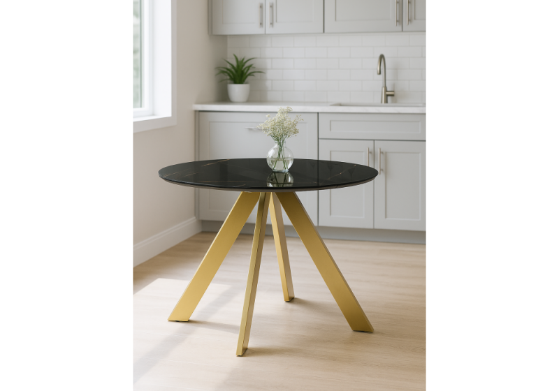 Стол стеклянный Галвестон 100х76 обсидиан / черный / золото (100x77)