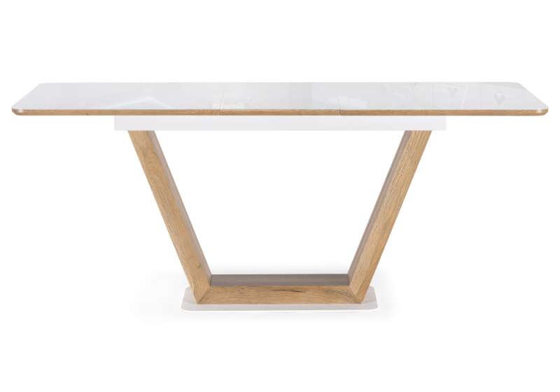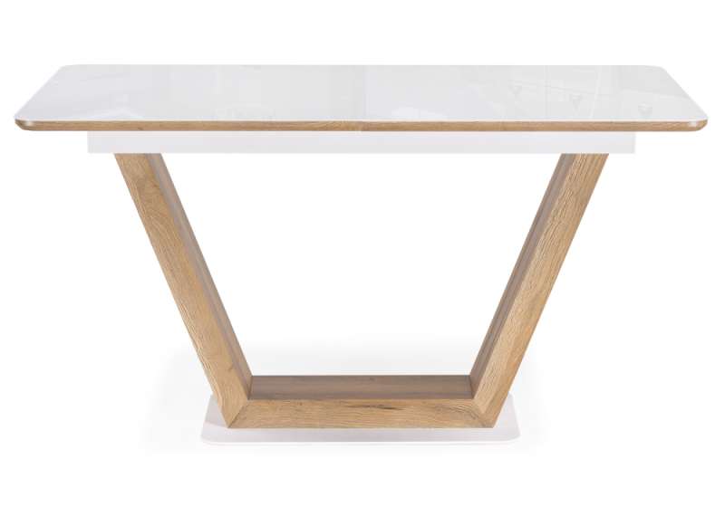 Стол стеклянный Иматра 140(180)х80х75 белый / дуб вотан (80x75).
