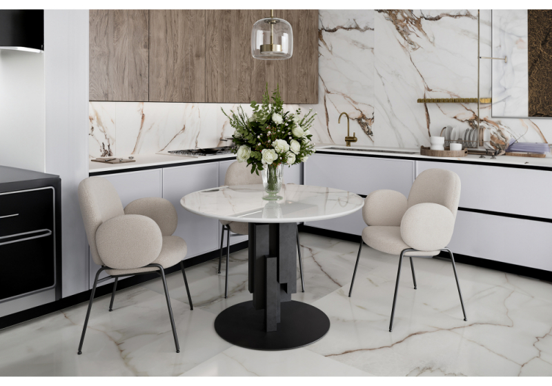 Стол стеклянный Калипсо 110 белый мрамор / черный (110x75)