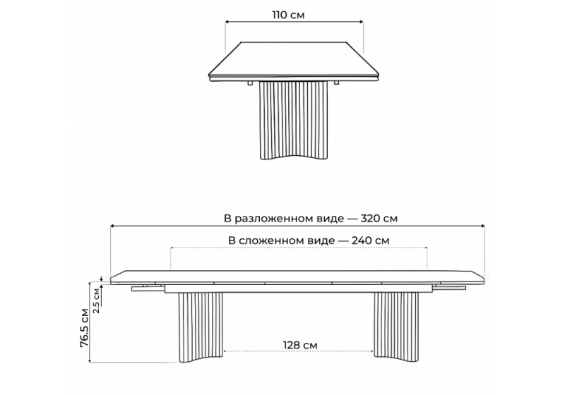 Длина стола в разложенном виде: 320 см.