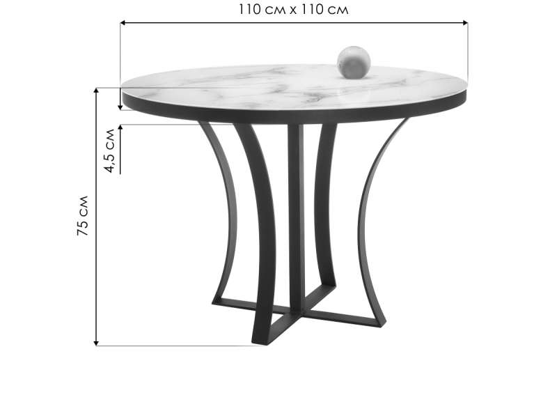Стол стеклянный Нейтон графит / белый мрамор (110x75).