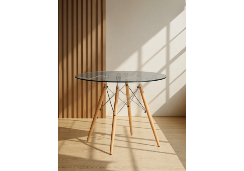 Стол стеклянный PT-151 80х80х76 clear glass / wood (80x76)