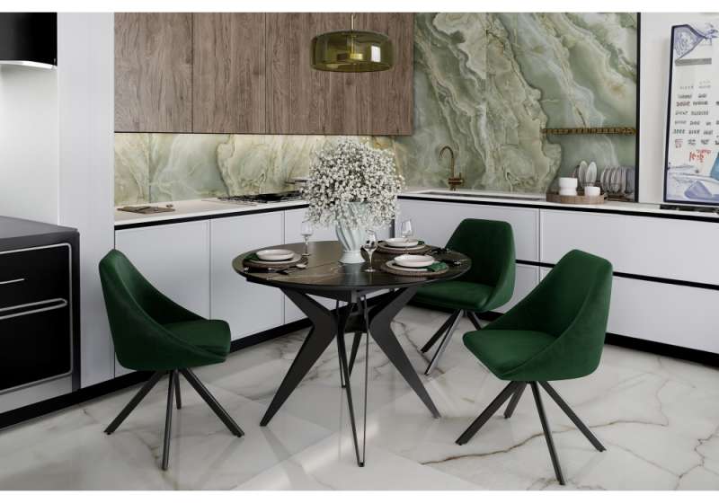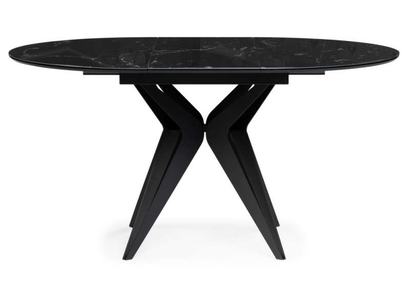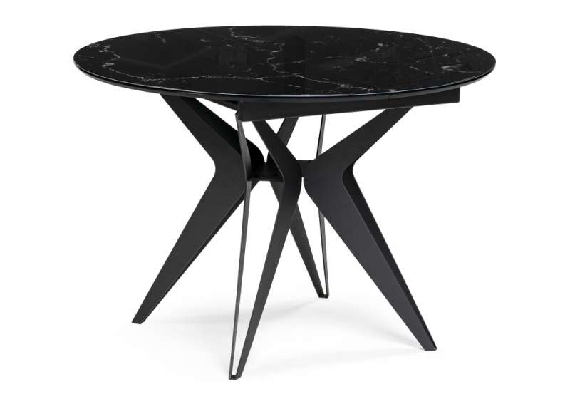 Стол стеклянный Рикла 110(150)х110х76 черный мрамор / черный (110x76)