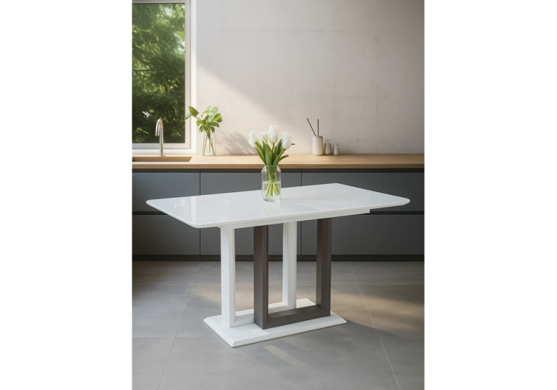 Стол стеклянный на тумбе Санса 140 белая шагрень / грей (80x76)
