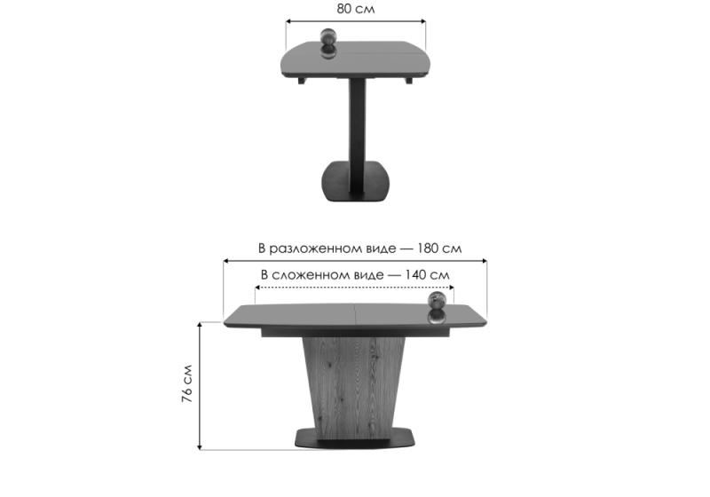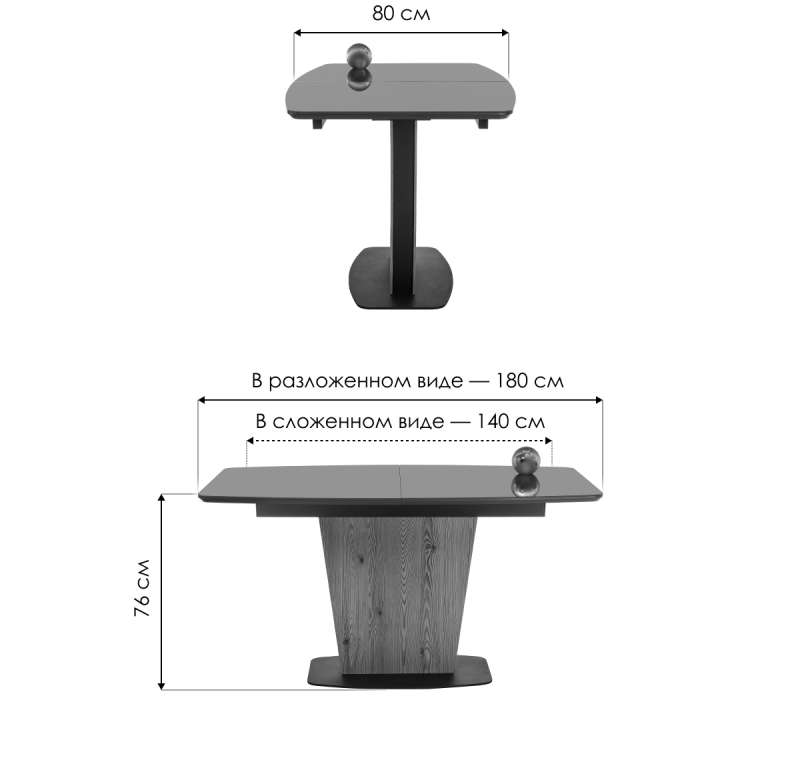 Стол стеклянный Теон дуб антор натуральный / графит (80x76).