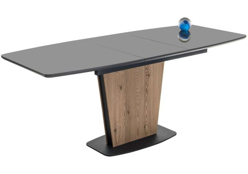 Стол стеклянный Теон 140(180)х80х76 лиственница / графит (80x76)