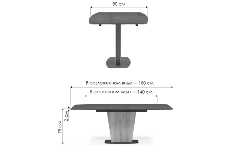 Длина стола в разложенном виде: 180 см.