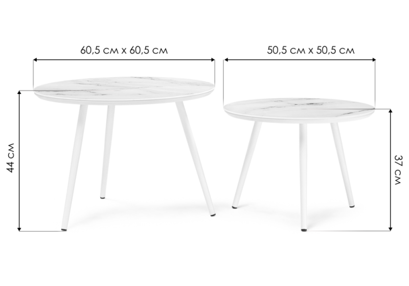 Размер маленького стола (ДхШхВ): 50 х 50 х 37 см.