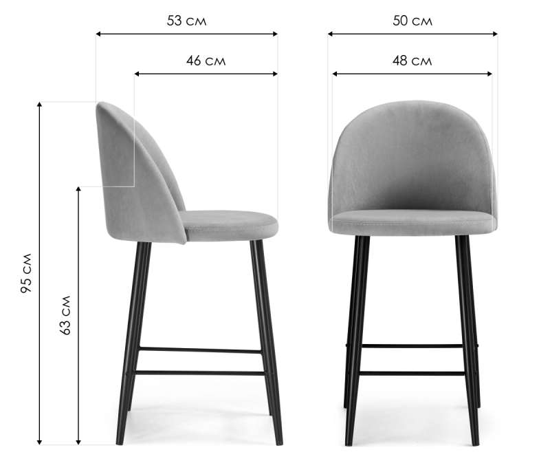 Барный стул Амизуре темно-серый / черный матовый (48x53x95).