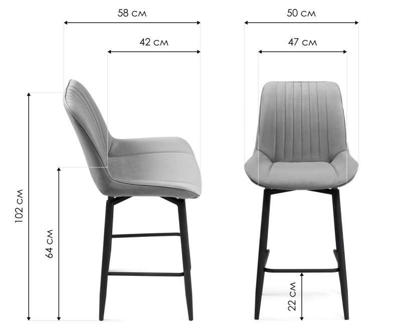 Барный стул Седа К крутящийся темно-серый / черный (50x58x102).