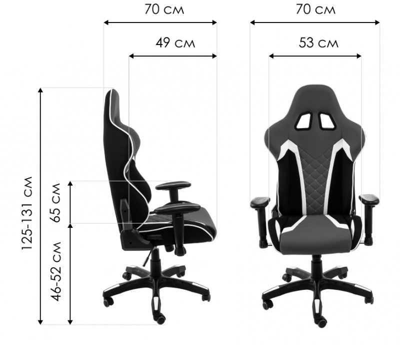 Поддержка поясницы в виде съемной подушки. Подлокотники регулируются по высоте на 7 см.