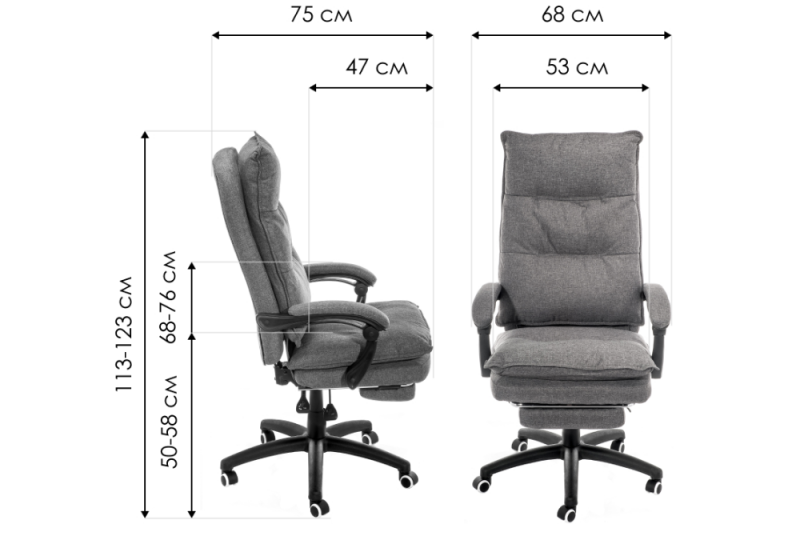 Глубина кресла с выдвинутой подставкой для ног - 107 см.