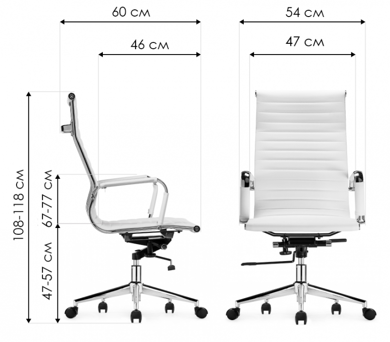 Высота подлокотников: 67 - 77 см.