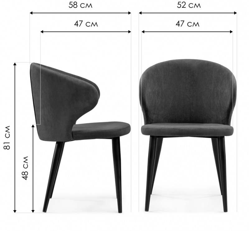 Стул на металлокаркасе Алсисар катания графит / черный (52x58x81)