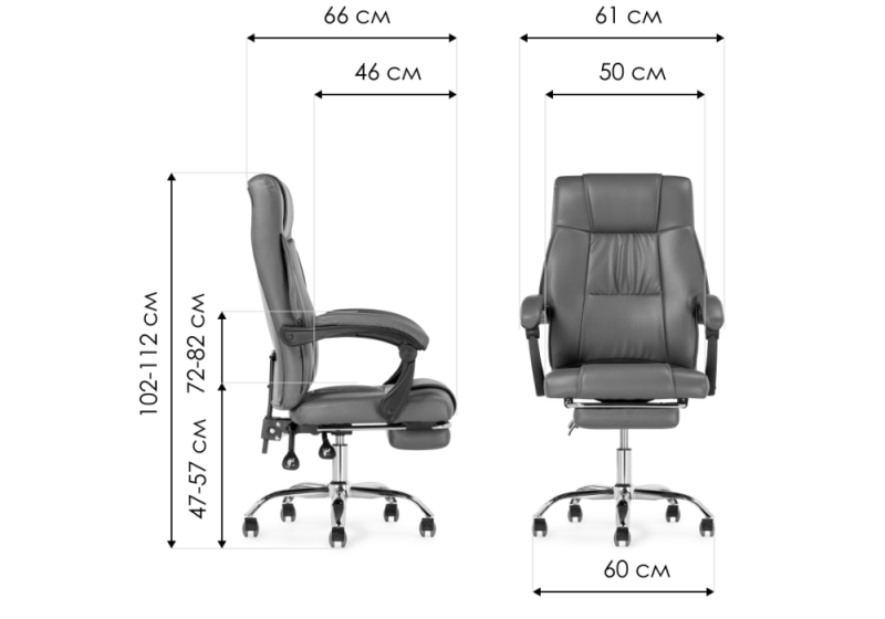 Высота подлокотников: 72 - 82 см. Диаметр крестовины: 60 см.