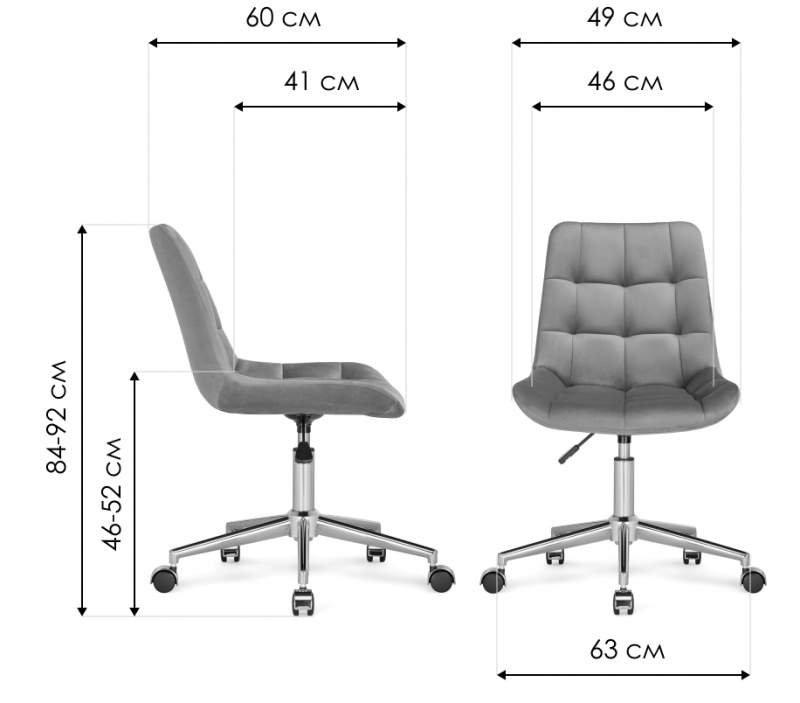 Диаметр крестовины: 63 см. Высота спинки: 38 см.