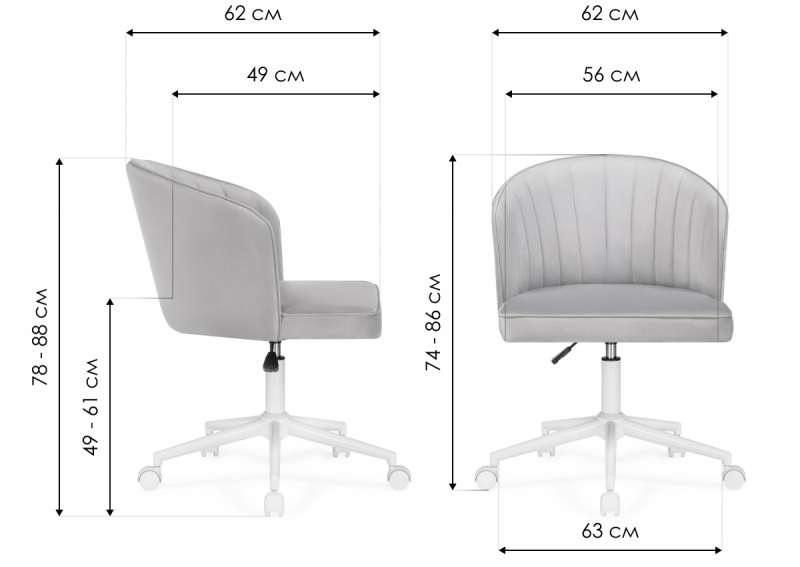Высота спинки: 35 см. Диаметр крестовины: 63 см