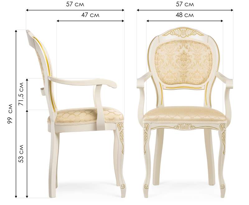 Стул деревянный Лауро патина золото / бежевый (57x56x100).