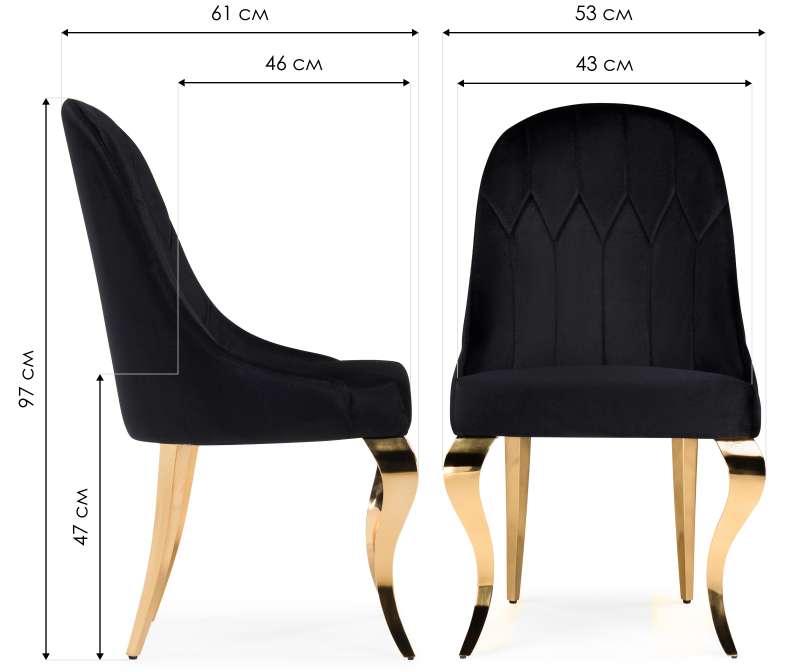 Стул на металлокаркасе Gustav black / gold (53x61x97).