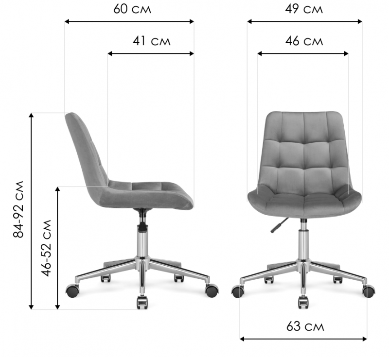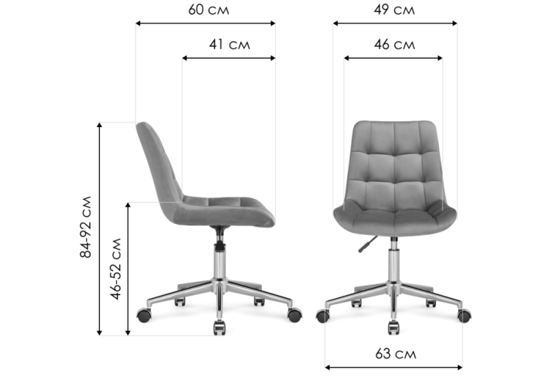 Диаметр крестовины: 63 см. Высота спинки: 38 см.