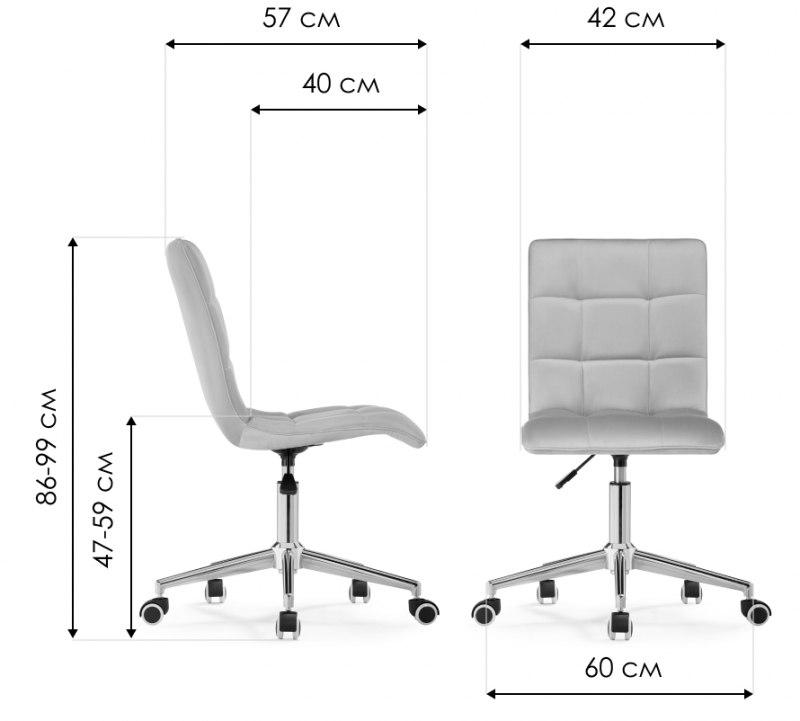 Диаметр крестовины: 60 см. Высота спинки: 44 см.