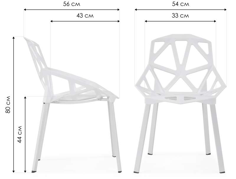 Стул One выдерживает нагрузку до 120 кг. Ножки выполнены из металла, сиденье и спинка - пластик.
