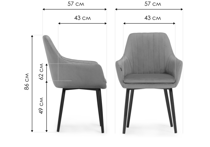 Высота подлокотников: 62 см.