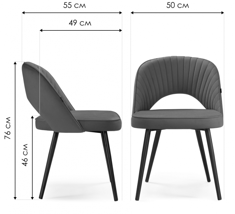 Стул на металлокаркасе Сандвикен velutto 20 / черный (50x55x76).